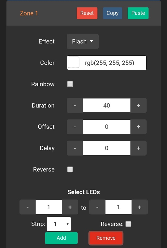 - Color sets what color the LEDs should be for this zone.
