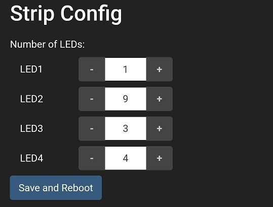 Firstly, go to the advanced page and enter the number of LEDs you have attached on each strip. If you don’t have a strip connected to one of the outputs simply set the number of LEDs to zero.